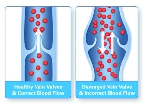 Varicose veins usually look dark blue, swollen, and twisted under the skin. Many patients develop symptoms over time that include pain, burning, heaviness, and aching that often curtails normal activities. These enlarged veins may look and feel better when the affected leg is elevated, however they become enlarged again while standing or walking. If left untreated, they may progress to more serious conditions such as leg swelling, discoloration or leg ulcers. Venous Reflux (venous insufficiency) is a condition in the lower extremities where blood flow back to the heart is interrupted because the tiny valves are no longer functioning properly, resulting in blood pooling in the legs and extending the veins. Many patients often go untreated because they may not be familiar with vein disease. The pain often progresses through the day and is worse in the evening. Symptoms may also increase during menstruation. Successful treatment of varicose veins can alleviate these symptoms.